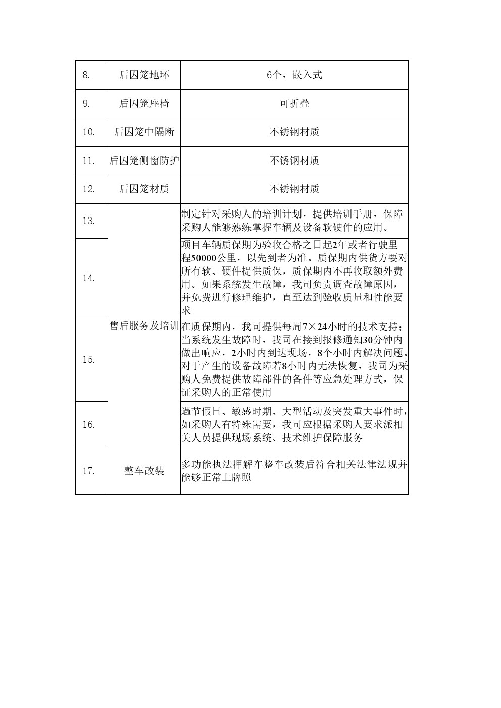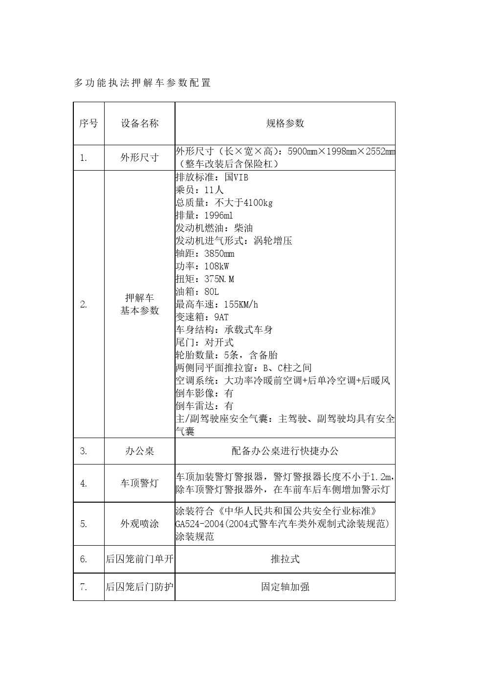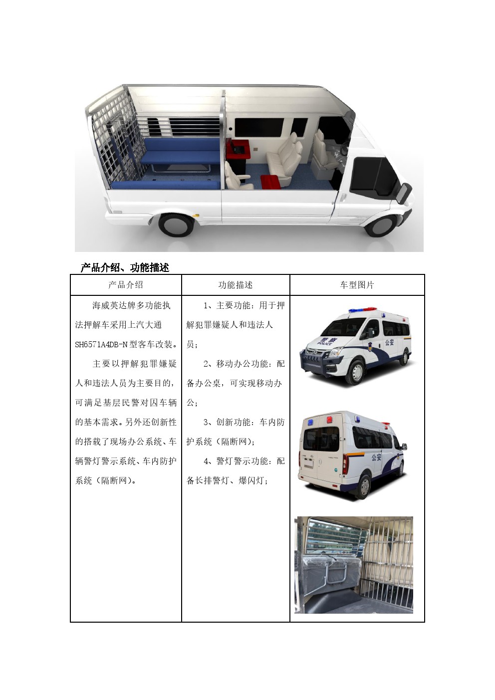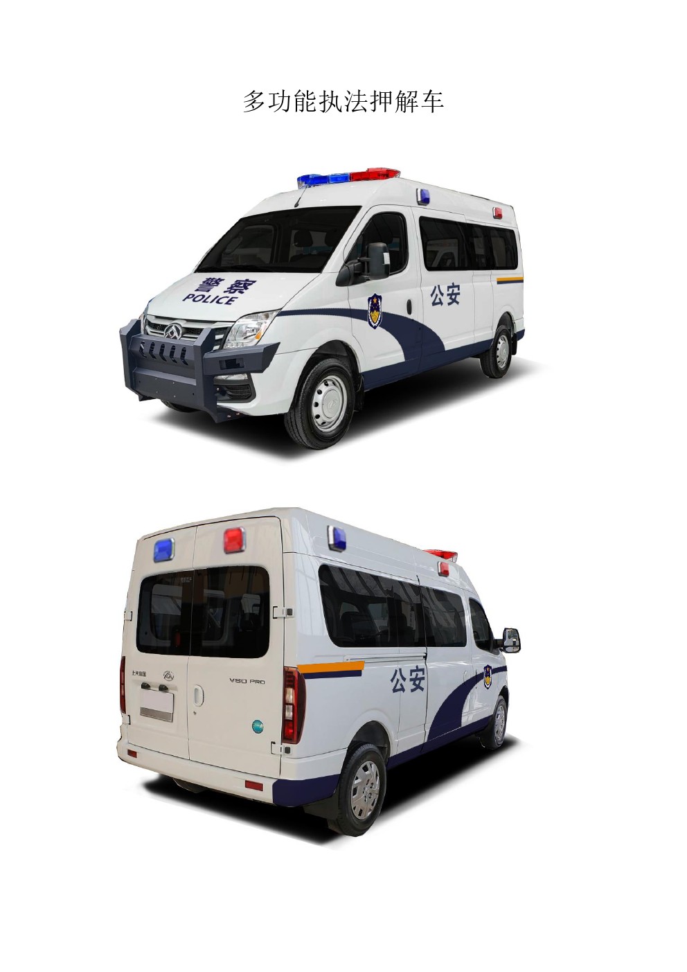 主要用于押送犯罪嫌疑人等。提供特制座位、双门栓安全锁等,以确保押解过程的安全可靠,同时外观上一般有警车专属的车身涂装、LED 闪光警示灯以及警报器等配备。