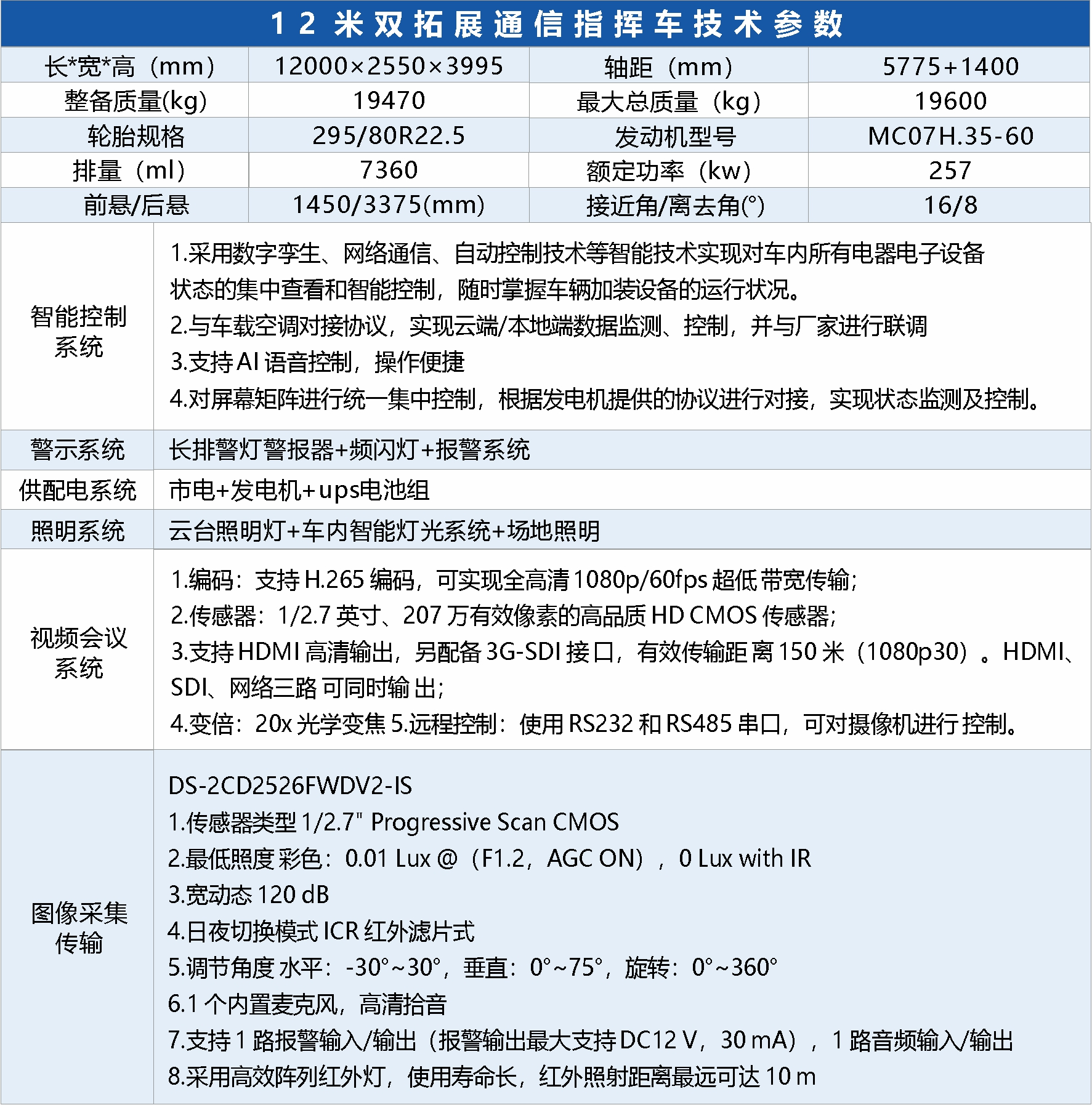 双拓展通信指挥车是一款基于特种车辆底盘打造,通过双侧面拓展扩大车内会议空间,以“应急通信保障+现场指挥调度”为核心功能的特种车辆,广泛应用于消防、应急管理、公安、电力、人防等领域,尤其适用于自然灾害(地震、洪水)、事故灾难(爆炸、坍塌)、公共卫生事件等突发场景下...